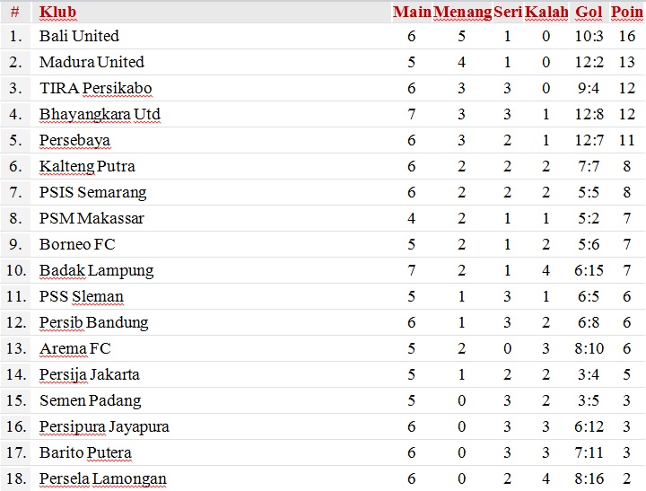 15:15 · persita tangerang · berita · pertandingan · klasemen · klub · pemain · galeri . Empat klub besar duduki peringkat liga 1 bri di posisi atas salah satunya persib bandung. Liga 1 bri pekan ke 4 akan digelar hari kamis tanggal 23 september 2021, dengan pertandingan pembuka persik kediri menghadapi psm makassar. Simak jadwal dan hasil klasemen bri liga 1 2021. Klasemen bri liga 1 2021/2022, update terbaru live score pertandingan bri liga 1 terakhir, disertai daftar top skor.